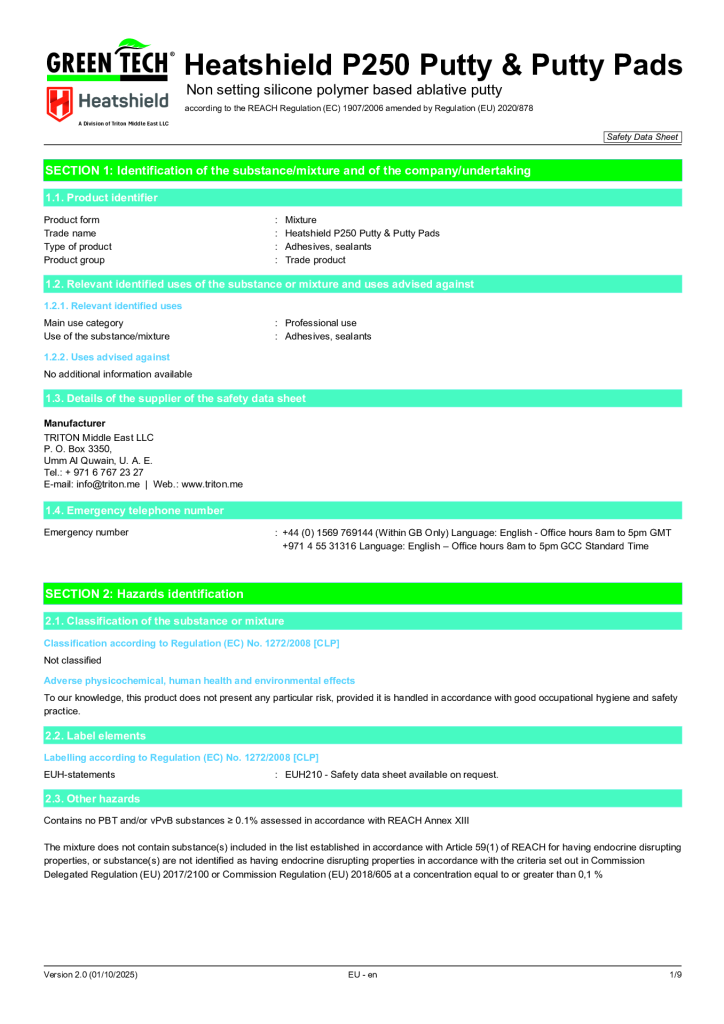 GREENTECH HEATSHIELD P250 Flexible Putty is silicone polymer based which remains permanently flexible with excellent adhesion properties. Tested and Certified in accordance with BS EN 1366-3, and other International Standards, P250 is a versatile and reusable solution for a wide range of fire stop requirements and is particularly suited to multi cable penetration seals.