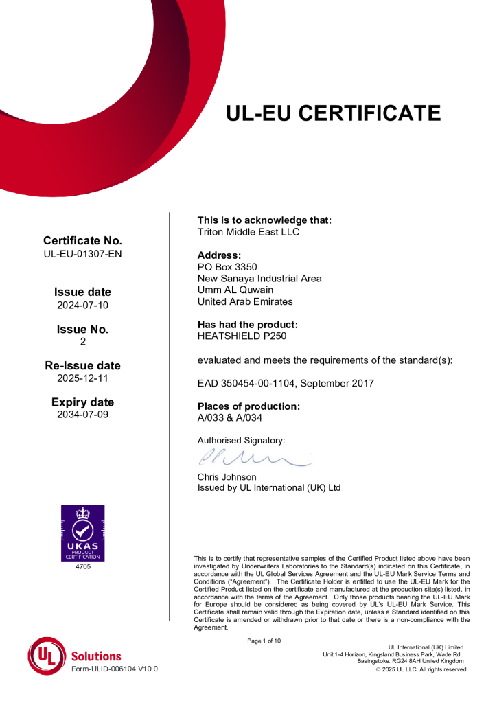 - Tested and certified by internationally recognised independent authorities in accordance with BS EN 1366-3 2021 for up to 2 Hours fire resistance.